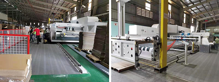 東方精工印刷機團隊通過幾天緊張有序的設備安裝與初步調試,最終完成了對該設備的調試,設備進入到生產運營階段且運行效果良好,甚至在客戶提供的紙板材料較差的情況下,也能夠達到客戶預期的效果。