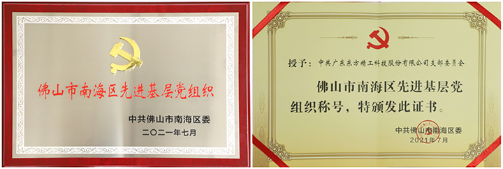 6月30日上午,在慶祝中國共產黨成立100周年之際,南海區召開了“兩優一先”表彰大會,此次表彰大會中,廣東東方精工科技股份有限公司黨支部榮獲南海區先進基層黨組織的榮譽稱號。
